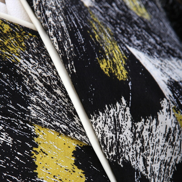 モノトーンカラーで色合いは落ち着いた印象ですが、ビビットな蛍光イエローがアクセントカラーになっていて華やかに着ていただけます。大きく描かれたヒョウ柄がとてもクールで、まるでアーティストのステージ衣装のよう。お洒落な着こなしで、あなただけのスタイルを確立していただけます。またヘアアクセサリーやメイクを着物に合わせてこだわるとトータルコーディネートを楽しめます。