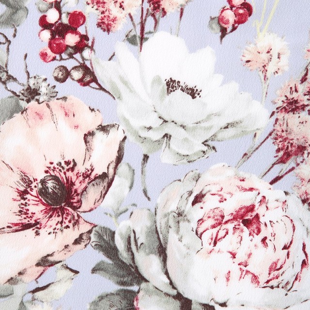 女性らしい柔らかい色彩の上に描かれるのは、大輪の花が美しい「牡丹」。牡丹は「百花の王」とされ、古くから幸福や富貴の象徴として描かれてきました。また不老不死、不老長寿という縁起のいい意味もあります。