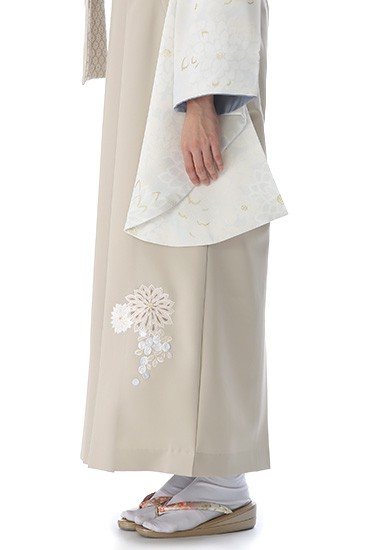 合わせる袴は、肌馴染みのいい「生成色(きなりいろ)」。同じ白色でも少し黄みが入ることで柔らかく暖かい印象を与えてくれます。