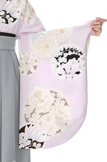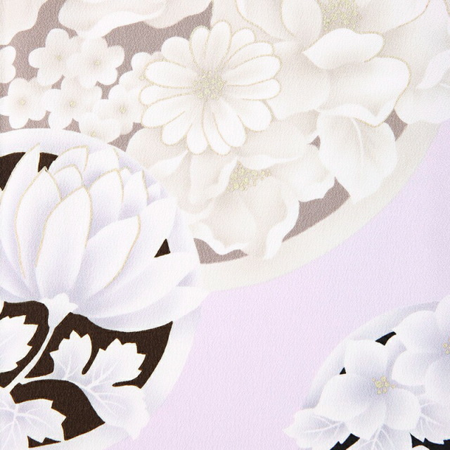 着物地の薄い紫色は、「白菫色(しろすみれいろ)」。白菫の花のようなほとんど白に近い紫色で、菫の花は万葉の頃より愛された草花で、古くより親しまれた女性らしい優しい色味です。