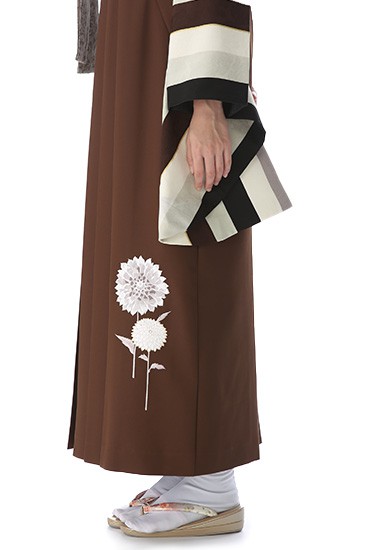 そして合わせる袴は、深みのある茶色。濃い色の着物は顔のパーツがはっきりするので、撮影の多い卒業式のシーンにぴったりです。