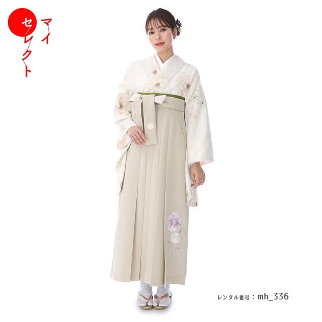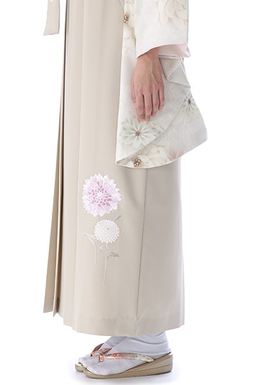 白い着物に、少し黄みが入ったナチュラルカラーの「生成色(きなりいろ)」の袴を合わせた同系色コーディネート。