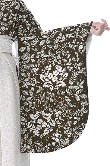 着物地の「焦茶(こげちゃ)」は、黒みがかった茶色で、江戸時代に流行した茶色系統の一種で、現代でもよく使われています。深みのあるカラーは上質さがあり格が高い印象を与えてくれます。