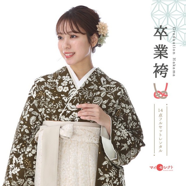 柄×柄のコーディネートですが、濃淡があり、全体的に同系色でまとまりがあるので、すっきりとした印象に。しかし華やかさもあり、非常におすすめの一着です。卒業式に着用する袴は、人生の中で大切な日を華やかに彩る衣装です。自分らしい運命の一着が見つかりますように。