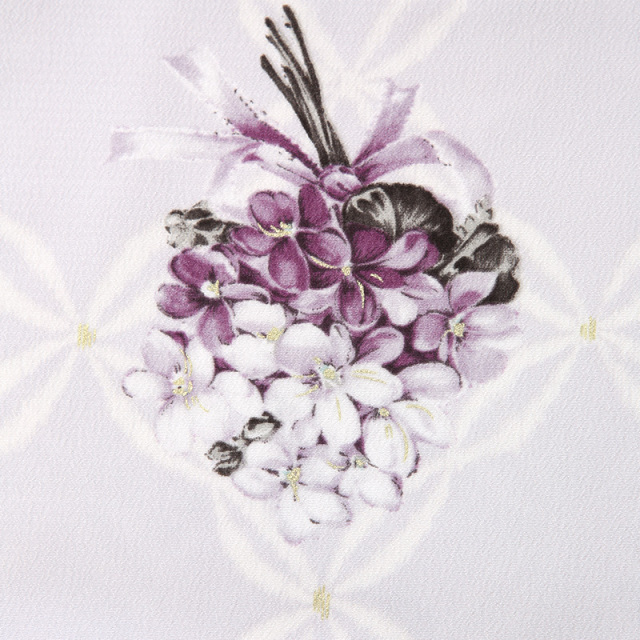 色味や文様が控えめな雰囲気で、ふんわりとした優しい装いは、見ている方も幸せな気持ちにしてくれます。卒業式という特別な日に相応しく、そっと華を添えてくれる、そんな一着です。