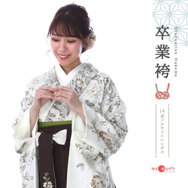 | 付属品 | 着物・袴・長襦袢(半衿付き)・半幅帯・伊達衿・草履・足袋(プレゼント)・肌襦袢(ワンピースタイプ)・腰紐4本・コーリンベルト・前板・伊達締め2本・衿芯 ※ブーツは付属されませんが、当店の有料オプションからレンタル可能です。 ※ブーツをご利用される場合、草履・足袋は付属されません。 |