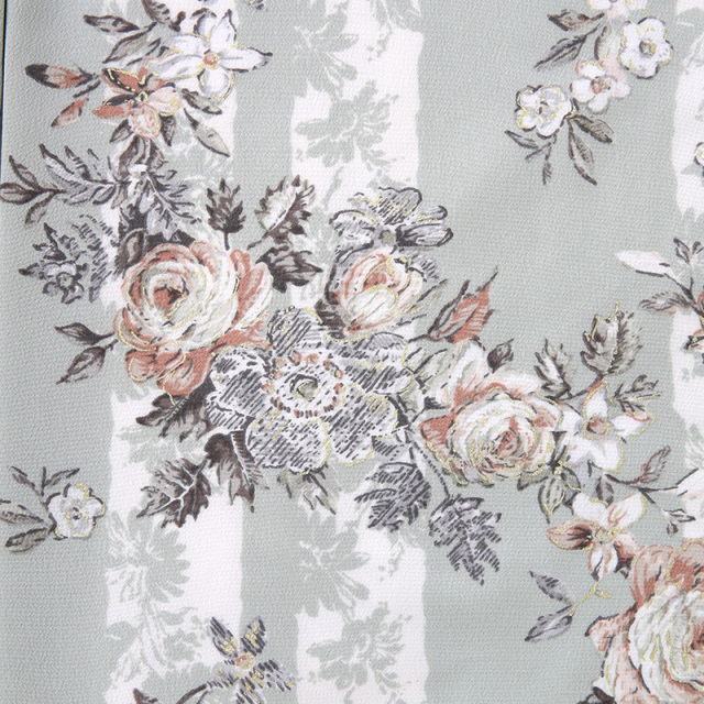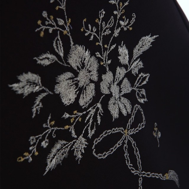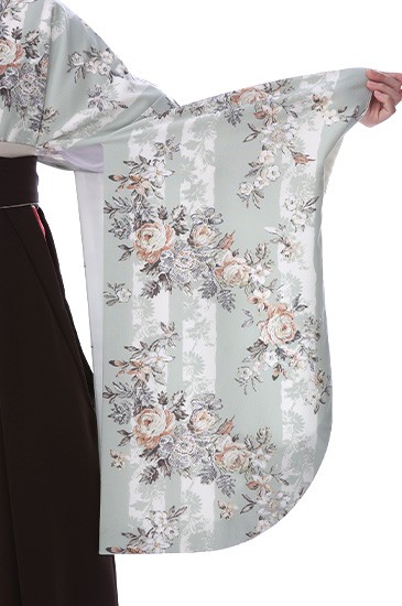 着物に描かれるのは、古典的なものではなく、西洋の絵画のようなタッチで繊細に描かれる美しい花々。特定されるものではなく、抽象的に描かれるので、季節を問わずに軽やかに着用できます。そして袴には、お花やブーケの模様が刺繍で施されていて、控えめな可愛さが乙女心をくすぐるポイントです。