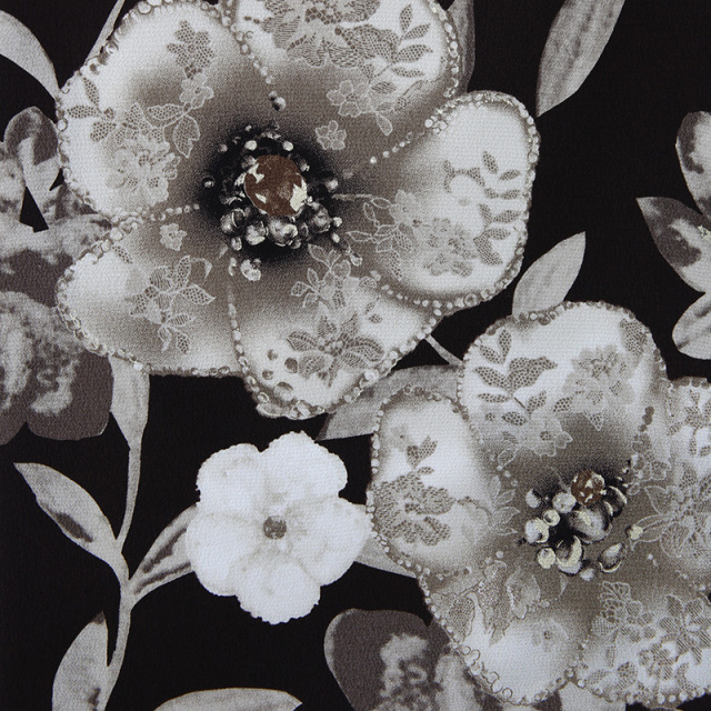 片身替わりのお洒落なデザインで、お花を幻想的に抽象的に描き、どこか懐かしい気持ちにしてくれるレトロモダンスタイル。派手すぎずに、でも華やか、気品溢れる落ち着いた装いは、まわりの目をひくこと間違いなしです。
