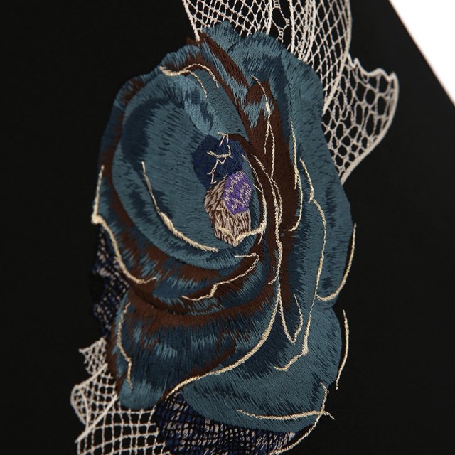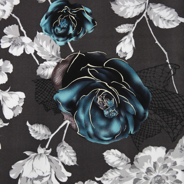 誰からも愛される人気の薔薇を華やかに表現した、エレガントなデザインです。気品があり、クールで華やかな装いを好まれる方に非常におすすめの一着です。