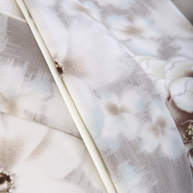 そしてお花の文様がふんわり幻想的に描かれます。中には大輪の花「牡丹」も描かれます。牡丹は、姿の美しさから「百花の王」とされており、富貴、高貴、幸福を表しています。