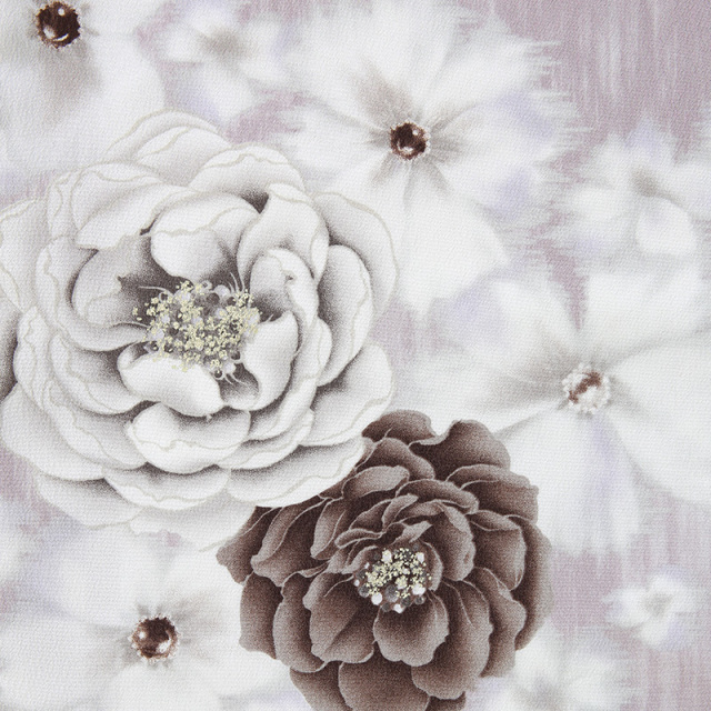 そこにお花の文様がふんわりと幻想的に描かれます。中には大輪の花「牡丹」も描かれます。牡丹は、姿の美しさから「百花の王」とされており、富貴、高貴、幸福を表しています。