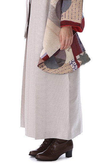 個性的で独特な世界を表現したこちらの装い。袴のアイボリーは「生成色(きなりいろ)」です。晒す前の木綿のような色味で、肌馴染みのいいカラーです。