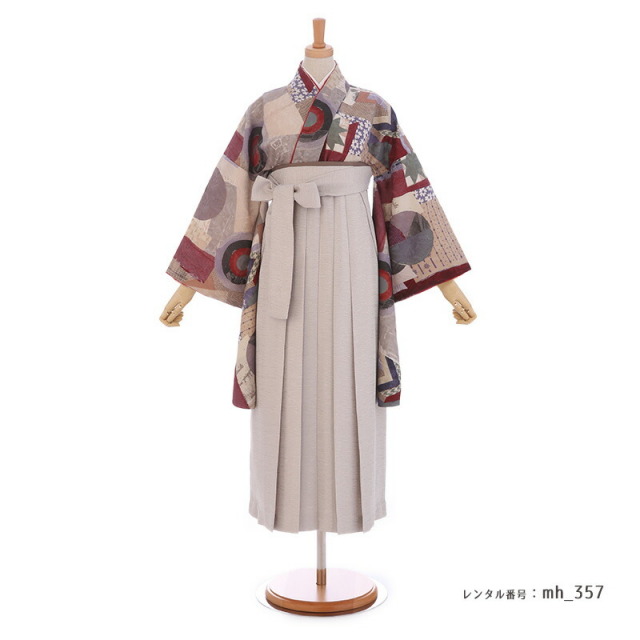 | 付属品 | 着物・袴・長襦袢(半衿付き)・半幅帯・伊達衿・巾着(+500円)・草履・足袋(プレゼント)・肌襦袢(ワンピースタイプ)・腰紐4本・コーリンベルト・前板・伊達締め2本・衿芯 ※ブーツは付属されませんが、当店の有料オプションからレンタル可能です。 ※ブーツをご利用される場合、草履・足袋は付属されません。 |