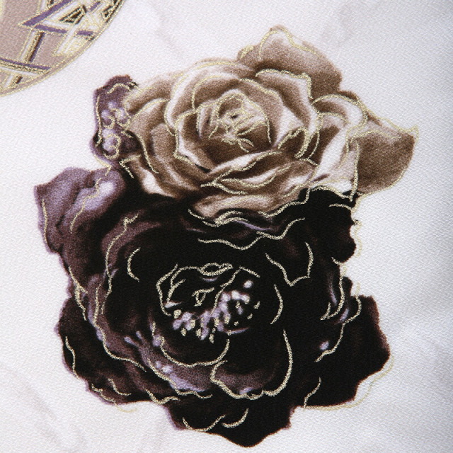 古くから伝わる古典的な吉祥文様ですが、色合いがシックで、モダンな雰囲気にお洒落に仕上がりました。上品で華やか、でも個性も感じる魅力的な装いです。