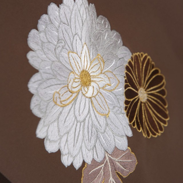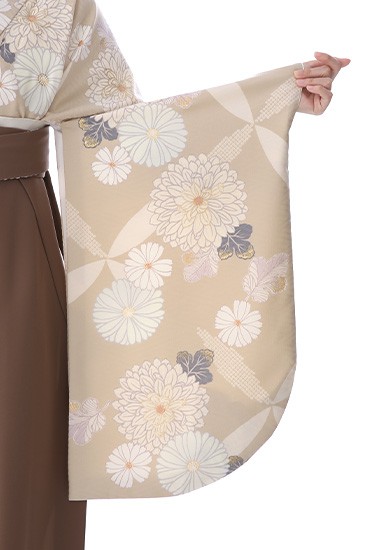 着物地のベージュカラーは「白茶(しらちゃ)」と呼ばれ、薄くて明るい茶色のこと。色あせて白っぽくなることを白茶けるといいます。江戸時代の文化、文政期に茶人や数寄者が好む粋な色として流行しました。そして、袴の濃い茶褐色は「煎茶色(せんちゃいろ)」。煎茶というと緑色を想像すると思いますが、本来は煎ったものなのでこのような茶色であらわします。