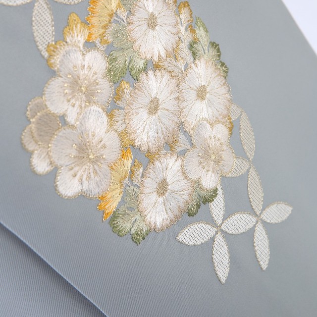 そして縁起のいい古典柄が描かれます。草花が丸く描かれた「花丸紋」は、角がなく優しさがあり清楚な印象を与えます。そして丸い円は始まりも終わりもないということから、永遠に続く幸せを表現しています。また円は「縁」を連想させるので、門出のお祝いにぴったりな文様です。