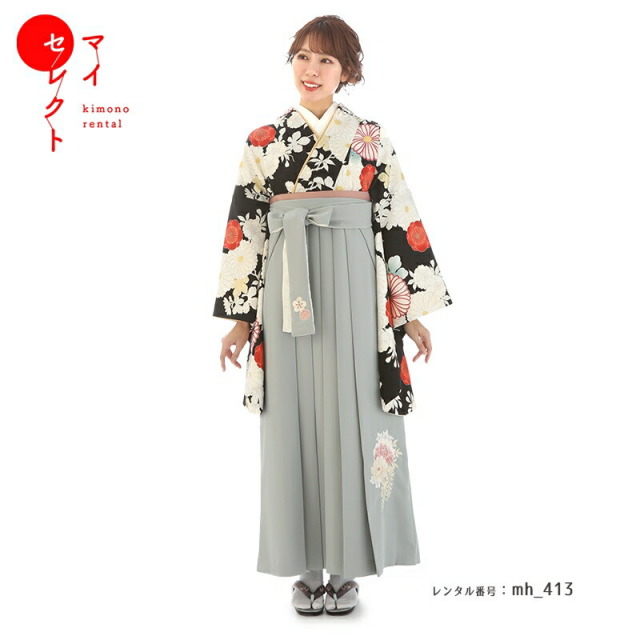 | 付属品 | 着物・袴・長襦袢(半衿付き)・半幅帯・伊達衿・巾着・草履・足袋(プレゼント)・肌襦袢(ワンピースタイプ)・腰紐4本・コーリンベルト・前板・伊達締め2本・衿芯 ※ブーツは付属されませんが、当店の有料オプションからレンタル可能です。 ※ブーツをご利用される場合、草履・足袋は付属されません。 |