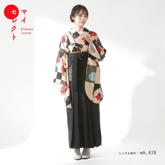 | 付属品 | 着物・袴・長襦袢(半衿付き)・半幅帯・草履・足袋(プレゼント)・肌襦袢(ワンピースタイプ)・腰紐4本・コーリンベルト・前板・伊達締め2本・衿芯 ※ブーツは付属されませんが、当店の有料オプションからレンタル可能です。 ※ブーツをご利用される場合、草履・足袋は付属されません。 |