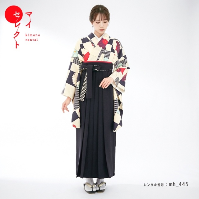| 付属品 | 着物・袴・長襦袢(半衿付き)・半幅帯・草履・足袋(プレゼント)・肌襦袢(ワンピースタイプ)・腰紐4本・コーリンベルト・前板・伊達締め2本・衿芯 ※ブーツは付属されませんが、当店の有料オプションからレンタル可能です。 ※ブーツをご利用される場合、草履・足袋は付属されません。 |