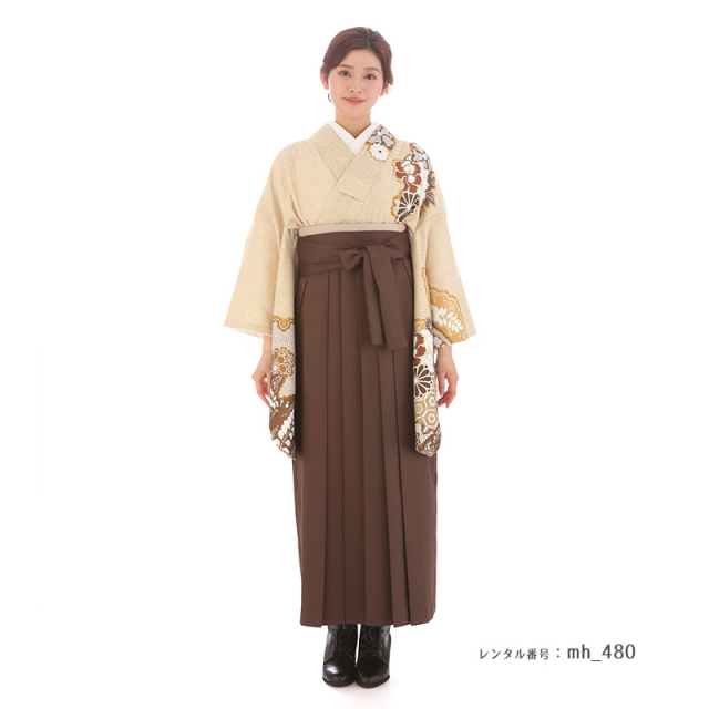 | 付属品 | 着物・袴・長襦袢(半衿付き)・半幅帯・伊達衿・巾着・草履・足袋(プレゼント)・肌襦袢(ワンピースタイプ)・腰紐4本・コーリンベルト・前板・伊達締め2本・衿芯 ※ブーツは付属されませんが、当店の有料オプションからレンタル可能です。 ※ブーツをご利用される場合、草履・足袋は付属されません。 |