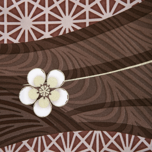 着物地に描かれるのは「ダマスク柄」。モチーフは植物で、それを取り囲むようにツタなどが配置されています。 つながったように繰り返すデザインによって模様が浮き上がって見えることで、ラグジュアリーな雰囲気を感じさせます。
