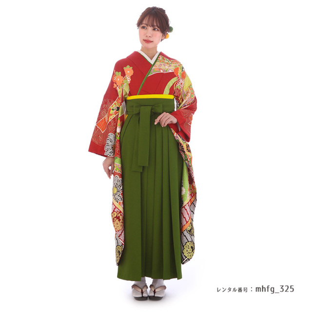 | 付属品 | 着物・袴・長襦袢(半衿付き)・半幅帯・伊達衿・巾着・草履・足袋(プレゼント)・肌襦袢(ワンピースタイプ)・腰紐4本・コーリンベルト・前板・伊達締め2本・衿芯 ※ブーツは付属されませんが、当店の有料オプションからレンタル可能です。 ※ブーツをご利用される場合、草履・足袋は付属されません。 |