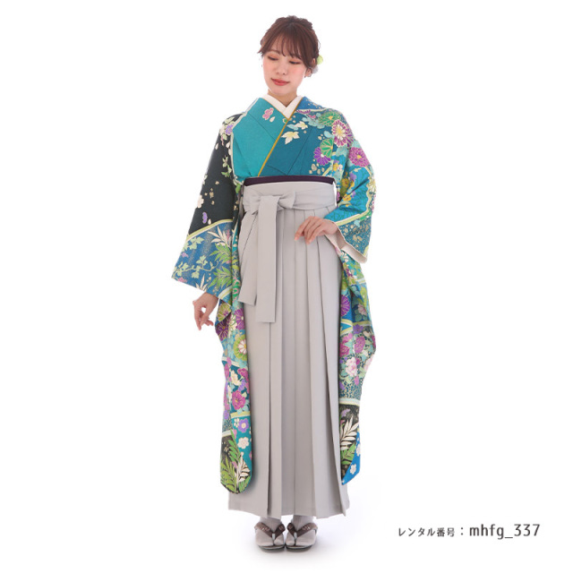 | 付属品 | 着物・袴・長襦袢(半衿付き)・半幅帯・伊達衿・巾着・草履・足袋(プレゼント)・肌襦袢(ワンピースタイプ)・腰紐4本・コーリンベルト・前板・伊達締め2本・衿芯 ※ブーツは付属されませんが、当店の有料オプションからレンタル可能です。 ※ブーツをご利用される場合、草履・足袋は付属されません。 |