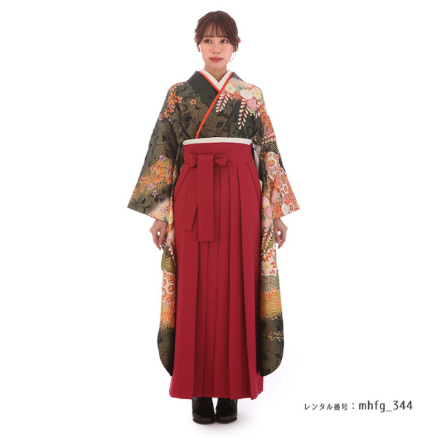 | 付属品 | 着物・袴・長襦袢(半衿付き)・半幅帯・伊達衿・巾着・草履・足袋(プレゼント)・肌襦袢(ワンピースタイプ)・腰紐4本・コーリンベルト・前板・伊達締め2本・衿芯 ※ブーツは付属されませんが、当店の有料オプションからレンタル可能です。 ※ブーツをご利用される場合、草履・足袋は付属されません。 |