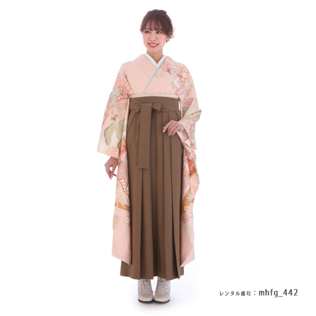 | 付属品 | 着物・袴・長襦袢(半衿付き)・半幅帯・伊達衿・巾着・草履・足袋(プレゼント)・肌襦袢(ワンピースタイプ)・腰紐4本・コーリンベルト・前板・伊達締め2本・衿芯 ※ブーツは付属されませんが、当店の有料オプションからレンタル可能です。 ※ブーツをご利用される場合、草履・足袋は付属されません。 |