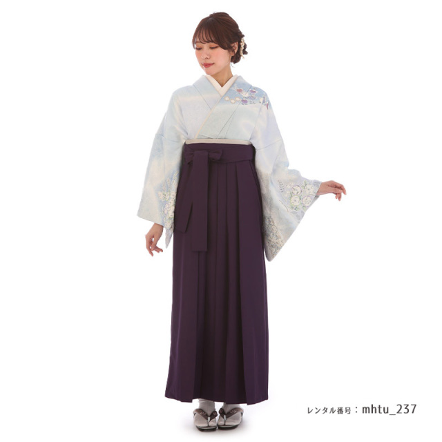 | 付属品 | 着物・袴・長襦袢(半衿付き)・半幅帯・伊達衿・巾着・草履・足袋(プレゼント)・肌襦袢(ワンピースタイプ)・腰紐4本・コーリンベルト・前板・伊達締め2本・衿芯 ※ブーツは付属されませんが、当店の有料オプションからレンタル可能です。 ※ブーツをご利用される場合、草履・足袋は付属されません。 |