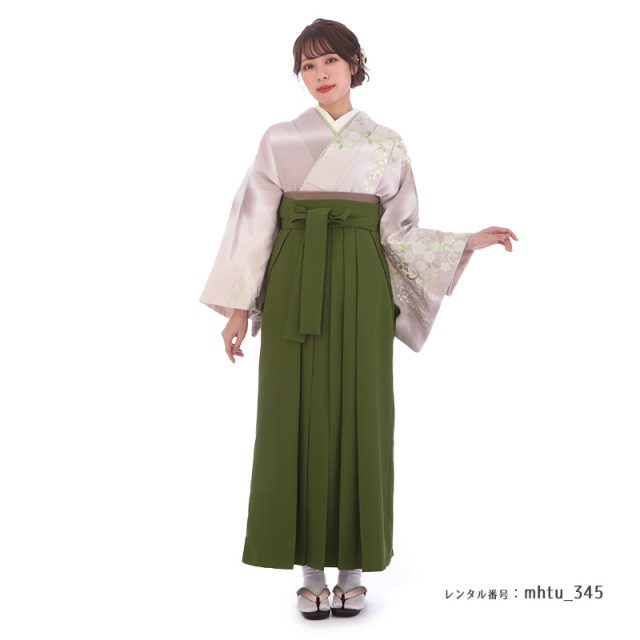 | 付属品 | 着物・袴・長襦袢(半衿付き)・半幅帯・伊達衿・巾着・草履・足袋(プレゼント)・肌襦袢(ワンピースタイプ)・腰紐4本・コーリンベルト・前板・伊達締め2本・衿芯 ※ブーツは付属されませんが、当店の有料オプションからレンタル可能です。 ※ブーツをご利用される場合、草履・足袋は付属されません。 |