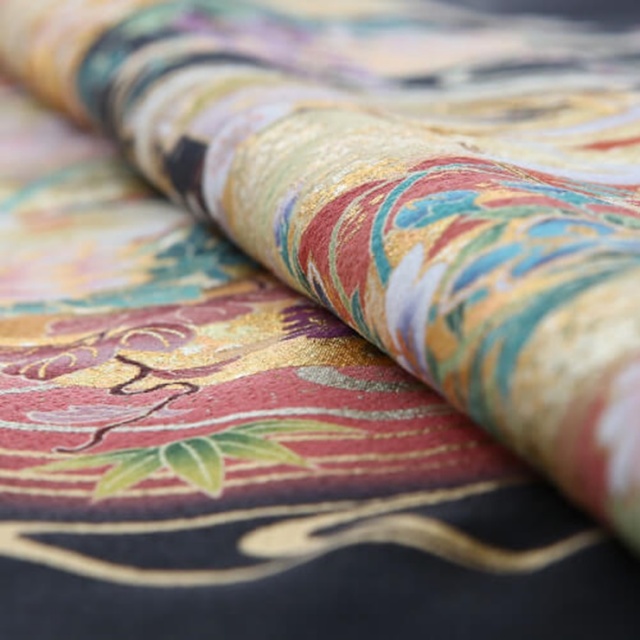 黒留袖「mito_348」の柄の雰囲気や生地の風合いをご覧ください。