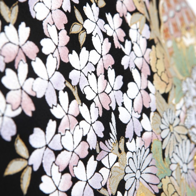 黒留袖「mito_568」の柄の雰囲気や生地の風合いをご覧ください。