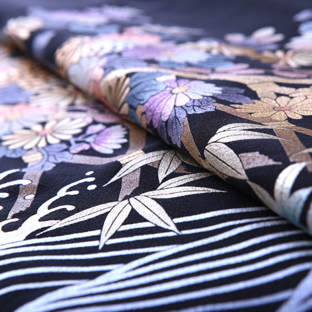 黒留袖「mito_614」の柄の雰囲気や生地の風合いをご覧ください。
