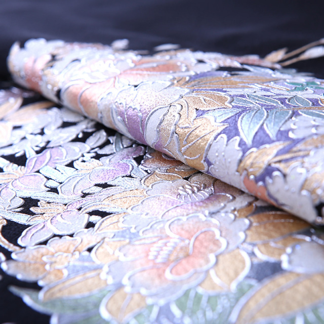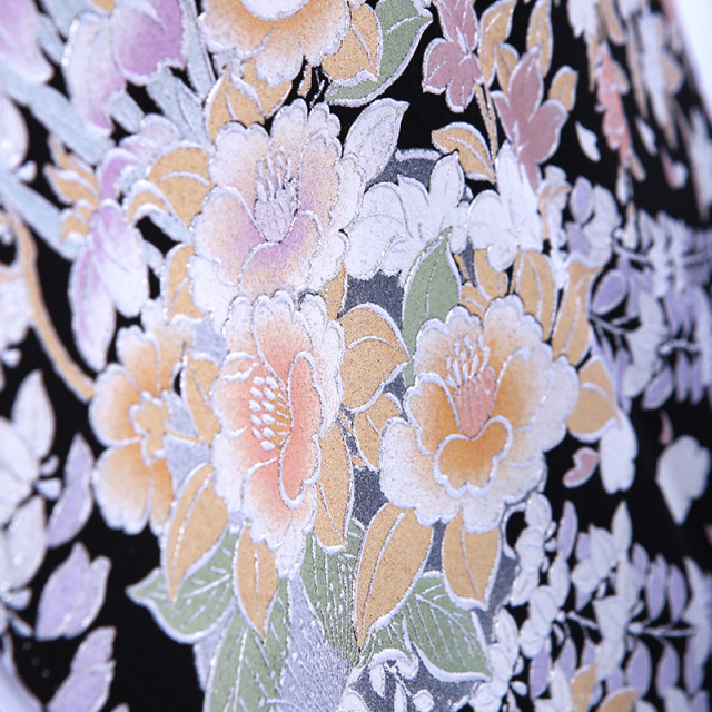 黒留袖「mito_615」の柄の雰囲気や生地の風合いをご覧ください。