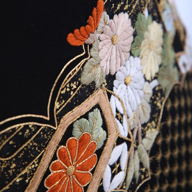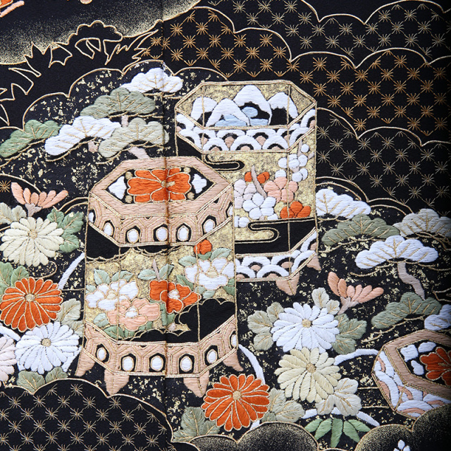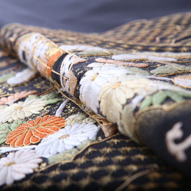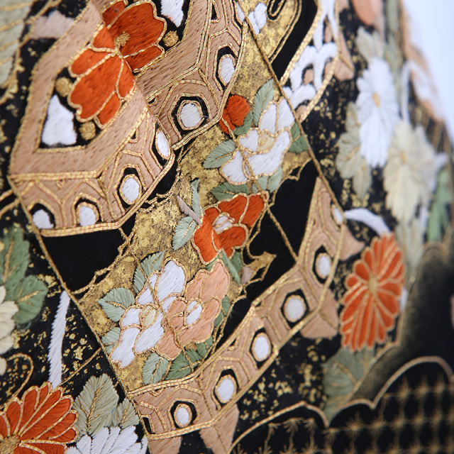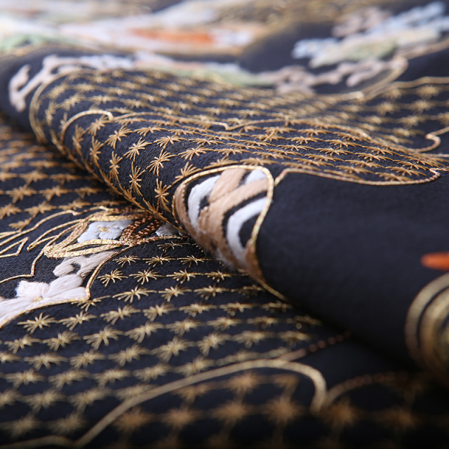 黒留袖「mito_621」の柄の雰囲気や生地の風合いをご覧ください。