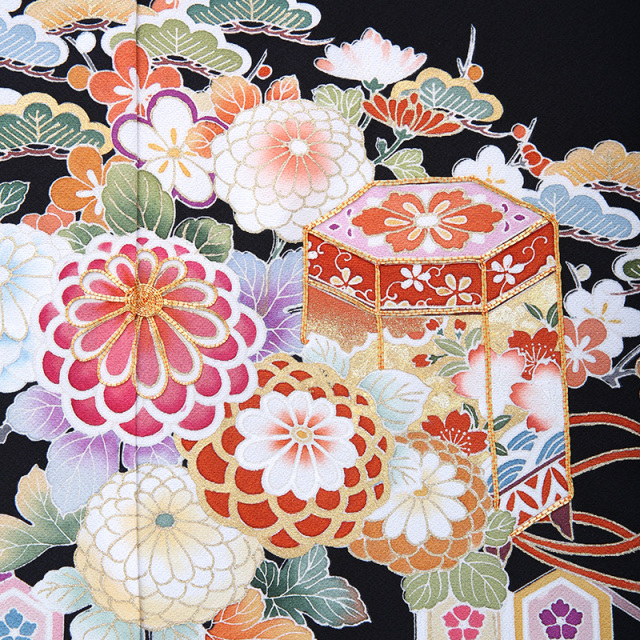黒留袖「mito_623」の柄の雰囲気や生地の風合いをご覧ください。