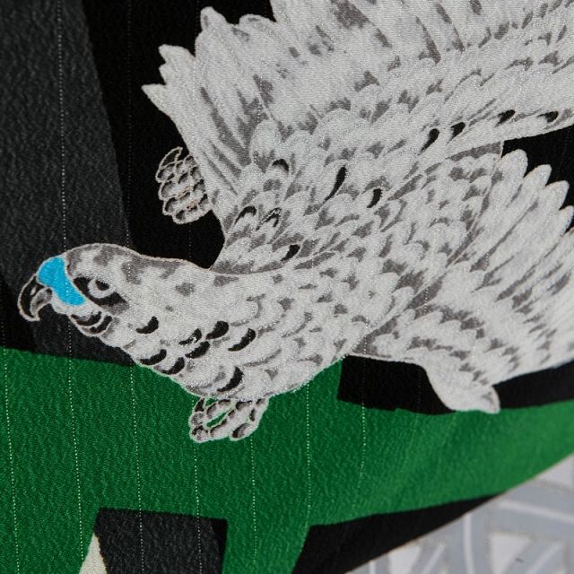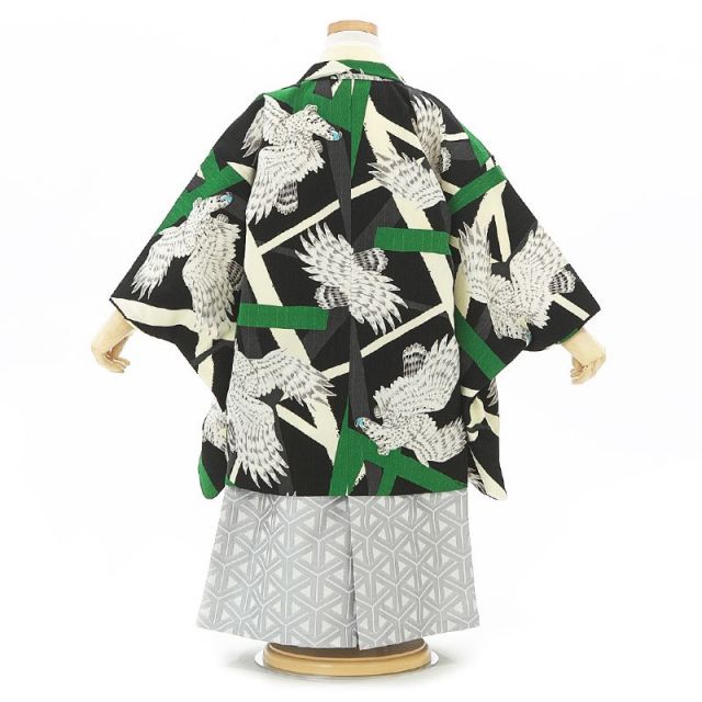 爽やかな新緑のイメージを思わせるような3歳男児アンサンブル。世界に羽ばたく日本男児に育って欲しいとの願いを込めたJAPAN STYLEのブランドが出来上がりました。世界を羽ばたく“鷹(たか)”のように、眼光鋭く小さな獲物さえ見逃さない“千眼力”、力強く捕まえた獲物は決して離さない爪のように「幸運や幸福をしっかりとつかむ」そんな親心のつまったコレクションです。古くから鷹での狩猟は、貴族の象徴であり権力の表れでもありました。武士なら憧れの貴族の遊びだったのでしょうね。将来にわたっての出世や先の世を幅広く見渡せるよう羽織の絵柄として思いを込めたのでしょう。袴に使用されている幾何学文様は、同じ柄を繋げていることから、「永久」「繁栄」などの意味があります。袴を銀糸(ぎんし)にすることにより、さわやかさを引き立たせています。お着物に使用されている“鳥の子色(とりのこいろ)”は、古来より日本の“和”の色目としてよく使用されるお色です。それによりお着物全体からやさしさを感じさせてくれます。やさしさの中にも強さを兼ね備えたJAPAN STYLEコレクション。是非お子様のお着物デビューにいかがでしょうか。
