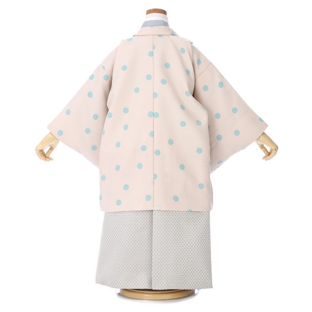 大地や空を感じさせるアースカラーで統一されており、肌馴染みがよく、大人っぽく落ち着いた可愛さがあります。羽織のベージュカラーは「生成色(きなりいろ)」。木綿のような黄みの白色で、そこに水色で水玉模様が描かれます。水玉は季節問わずに着用でき、また古典すぎずにお洒落な着こなしをしていただけます。袴には非常に細かく「七宝紋」が描かれています。楕円を重ねた文様で、円が続いていくことから、円満、調和、ご縁という意味が込められています。お守りのような文様で、幼き子の着物にぴったりです。トレンドを取り入れたい、お洒落さを出したいという方には、是非選んでいただきたい装いになりました。こなれた着こなしは、他とは違った自分らしさを出すことが出来ます。そして文様には、これからの人生の中で大切にしてほしい意味が込められているので、お祝い事に相応しい特別な一着でしょう。