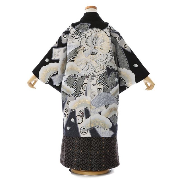 黒地の着物は上品で高級感があり、どの色よりも正統派な印象を与えます。日本の伝統文化を大切にしたい、王道のものを好まれる方におすすめの一着です。描かれる文様も縁起のいい吉祥文様。羽織に描かれる「松」は1年中美しい緑を保ち続け、「竹」は雪にも負けず真っすぐに伸び続け、「梅」は寒い冬が終わるといち早く香り高い花を咲かすことから「松竹梅」は、逆境に負けない力強さ、生命力を表しています。また袴には、「花菱」文様が描かれており、花菱とは菱形の中に花びらが4枚の唐花を配置した柄です。上品な柄として人気があり、豪華で華やかに仕上がっています。男の子着物らしく凛として重みのある装いは、大切な節目にぴったりでしょう。