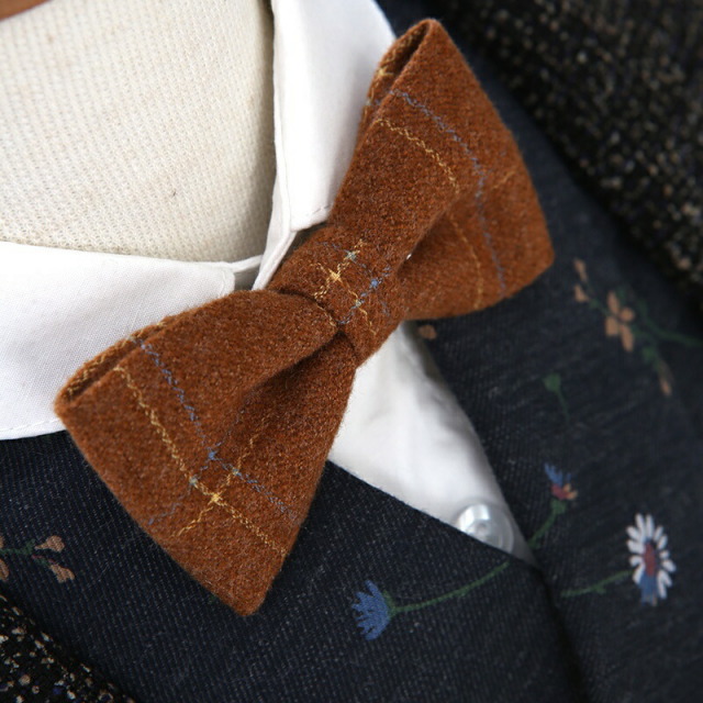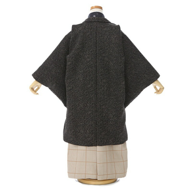レトロモダンで遊び心を感じるこちらのお祝い着。シックな色使いで上品落ち着いた雰囲気のある着物ですが、こだわりポイントが沢山あります。着物には、男の子着物では珍しく小花柄が描かれており、繊細にさりげなく描くことで可愛らしく上品に仕上がっています。そこに、上質なツイード生地の羽織と蝶ネクタイを合わせました。そして袴のベージュカラーは「利休白茶(りきゅうしらちゃ)」と呼ばれる伝統色。 わび茶道の祖「千利休」 をイメージさせる上品で穏やかなカラーです。洋服のようなお洒落なものを着用したい、他とは被らないスタイルがしたいという方におすすめの一着です。