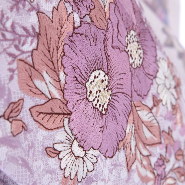 CUTE×PRETTY×ROMANTICなJILL STUART(ジル・スチュアート)の3歳被布(ひふ)セットが生まれました。世界中の女の子たちが一度は着てみたいファッションとしてその名を確立しています。お着物に描かれたブリリアントな花々は、ちょっと大人な女の子を演出しています。花々を縦ラインに描くことで、すっきりとしたデザインに仕上がっています。お花のラベンダー色は、感性を豊かにし、緊張や不安を癒し穏やかな気分にしてくれるとされています。また、神秘的で高貴な色なので優雅で上品な女の子を演出してくれることでしょう。お着物に羽織る被布(ひふ)には、大胆にアネモネの花が描かれています。アネモネは和名で「ボタンイチゲ(牡丹一華)」と言われています。英語では「windflower(風の花)」と言われます。広い草原で風になびくアネモネのイメージが膨らんできそうです。胸元にあしらってあるクルミボタンもファッションの一部として調和を持たせています。晴れの日は、このJILL STUART(ジル・スチュアート)のお着物を着て、優雅で上品な七五三をお祝いしましょう。
