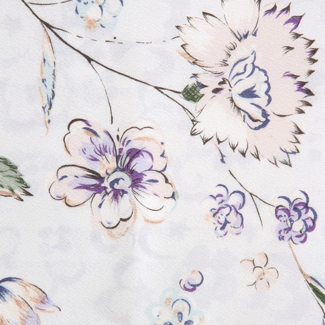 淡く上品な色使いがまるで大人の着物のような印象を受けます。被布は清楚なアイボリーに、着物地は淡い水色。海外の色名では「アリスブルー」と呼ばれ、ごく淡いグレーがかった水色を使っています。描かれる文様は、古典ではなく洋風の雰囲気。全体の色味を抑えて美しい花々が描かれているので、控えめな美しさを感じます。描かれている花々には優美で清々しい美しさがあります。繊細に描かれる様子は、まるで美しい絵画をみているよう。特別な日だからこそ普段の姿とは違う大人っぽい着物で、お祝いをしていただくと素敵な想い出になります。柔らかいペールカラーで、女の子らしく着こなせますが、甘すぎないところがこちらの着物の魅力です。上品な着物は、いつの時代も色褪せない素晴らしさがあります。あどけない普段のお顔と違い、少しお姉さんに見えるでしょう。一生に一度の晴れの日。健やかな成長とこれからの幸福をお祝いください。
