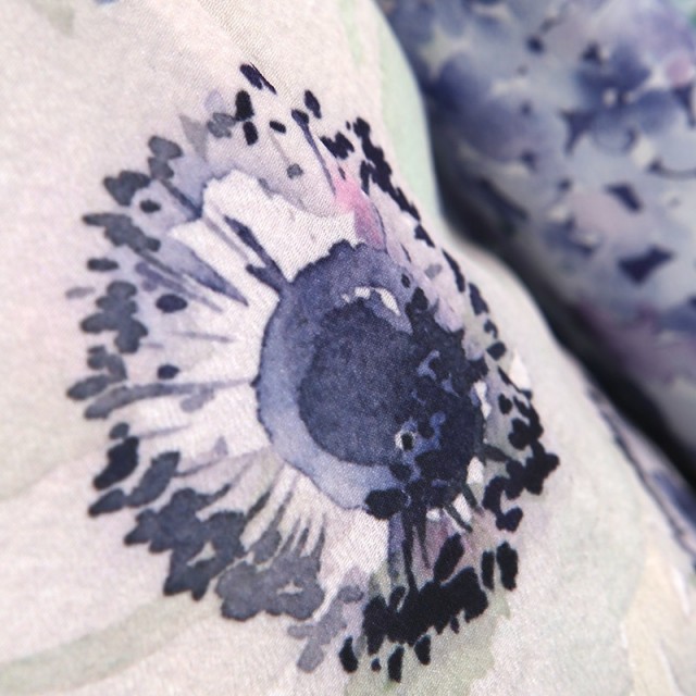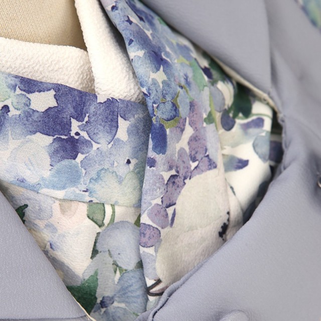 大人っぽくシックな印象を与えますが、どこか優しさや可愛さも感じるこちらの装い。被布の色は「スカイグレー」と呼ばれるわずかに青みがかった灰色です。グレーは控えめで上品な美しさがあります。自己主張が強くなく、まわりを引き立てる色味なので、描かれる花々が映えて非常にバランス良く仕上がりました。女の子着物ではなかなか目にすることが出来ない大人の着物のようなデザインで、他とは違うお洒落さを感じます。描かれる花々も、彩度を落とし淡く透明感が出るように描くことで、更に品の良さを与えます。雨上がりの晴れた日のガーデンのような雰囲気は、惚れ惚れする美しさ。「アネモネ」は、白く大輪の花で、「希望」「期待」という花言葉があります。全体的に洋風に仕上がっていて、着物を見慣れていない方でも着ていただきやすい一着です。クラシカルとモダンを融合させたような、華やかで可憐なこちらの着物。希望に満ち溢れた未来と健やかな成長を願い、幸せな一日をお祝いください。