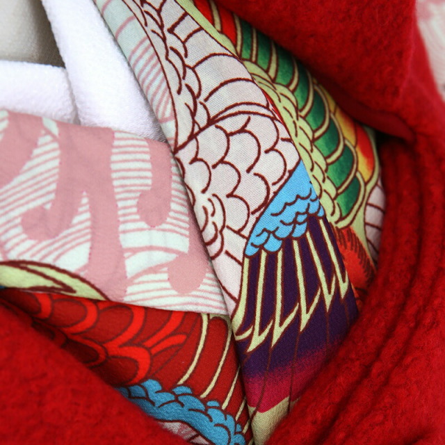 | 付属品 | 女の子七五三(3歳被布セット)に含まれる物:着物・被布コート・襦袢・草履・巾着・足袋・腰紐(3本)・髪飾り ※簡単な着付け動画で確認できます。 |