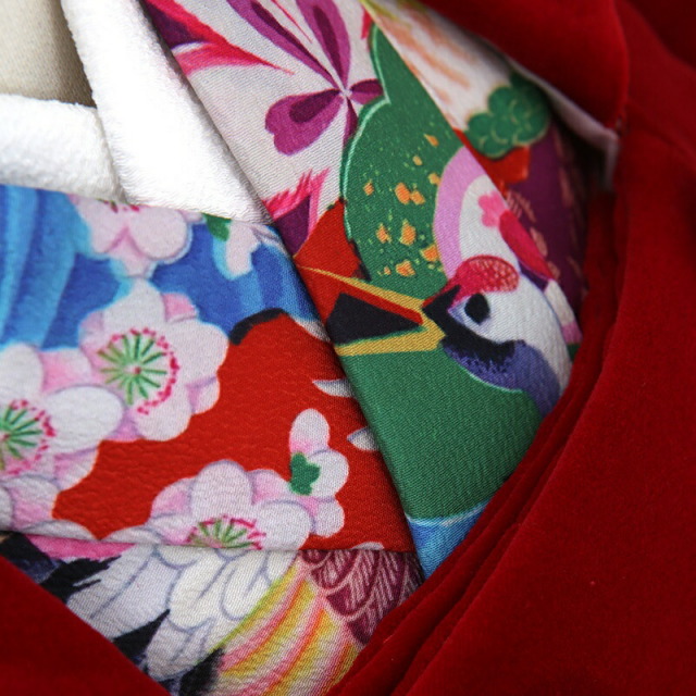 | 付属品 | 女の子七五三(3歳被布セット)に含まれる物:着物・被布コート・襦袢・草履・巾着・足袋・腰紐(3本)・髪飾り ※簡単な着付け動画で確認できます。 |