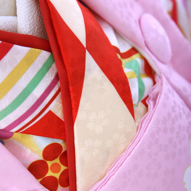 | 付属品 | 女の子七五三(3歳被布セット)に含まれる物:着物・被布コート・襦袢・草履・巾着・足袋・腰紐(3本)・髪飾り ※簡単な着付け動画で確認できます。 |