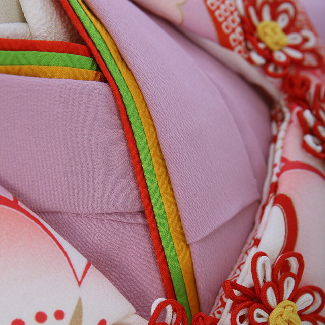 | 付属品 | 女の子七五三(3歳被布セット)に含まれる物:着物・被布コート・襦袢・草履・巾着・足袋・腰紐(3本)・髪飾り ※簡単な着付け動画で確認できます。 |