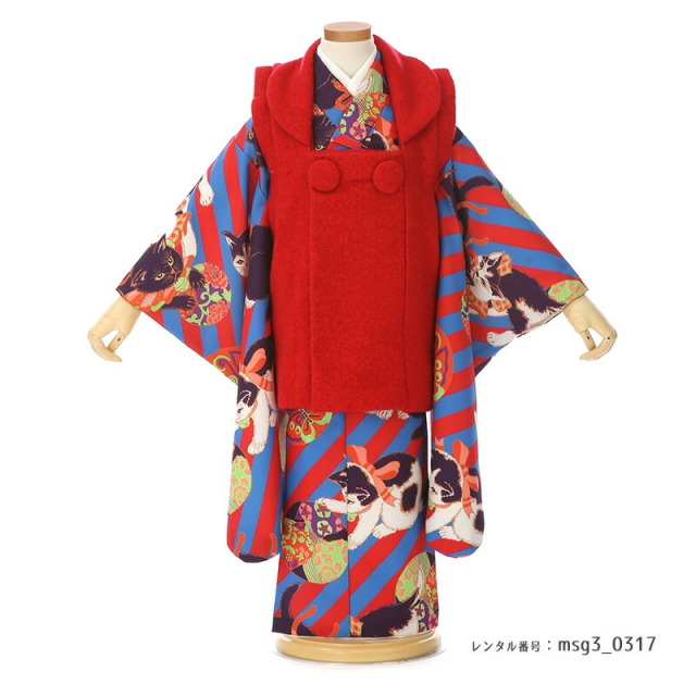 | 付属品 | 女の子七五三(3歳被布セット)に含まれる物:着物・被布コート・襦袢・草履・巾着・足袋・腰紐(3本)・髪飾り ※簡単な着付け動画で確認できます。 |