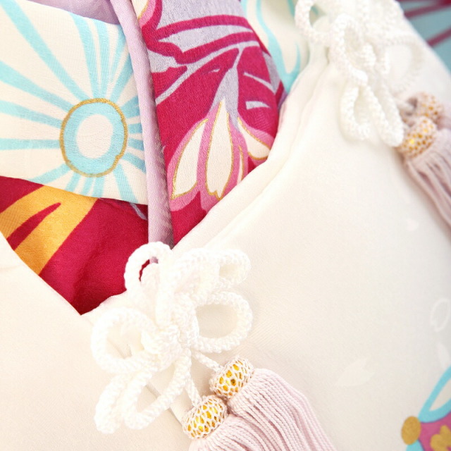 | 付属品 | 女の子七五三(3歳被布セット)に含まれる物:着物・被布コート・襦袢・草履・巾着・足袋・腰紐(3本)・髪飾り ※簡単な着付け動画で確認できます。 |